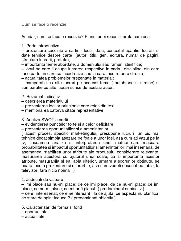 Cum Se Face O Recenzie