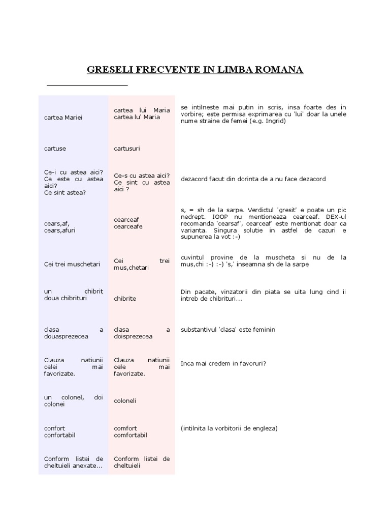 Greseli Frecvente In Limba Romana